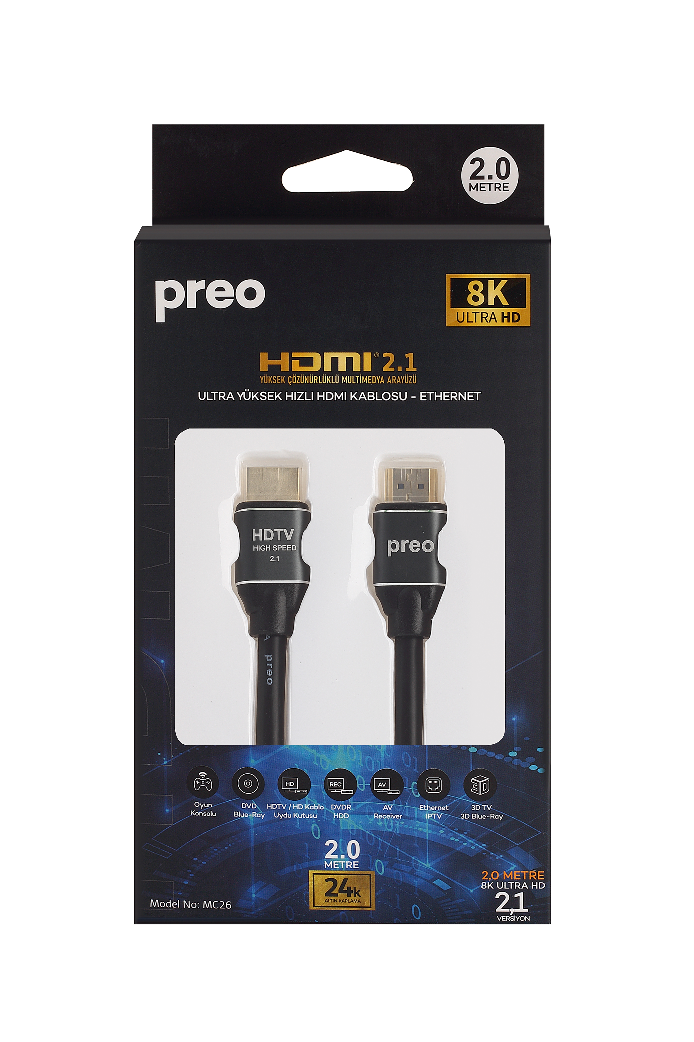 PREO My Cable MC26 2.1V 8K 2.0M Hdmı Kablo